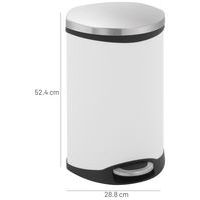 Design coquille élégant pour une intégration discrète dans toutes les pièces. Mécanisme soft closing assurant une fermeture silencieuse et sans effort. Liner en plastique amovible pour un entretien facile et une hygiène optimale. Finition anti-traces de doigts pour un aspect propre durablement. Ouverture à pédale pratique permettant une utilisation mains libres.