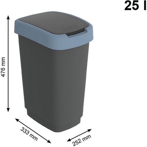 | Intitulé du produit | Poubelle Twist 25L, Capacité: 25 L, Ouverture: Basculante, Matériau: Plastique, Matériau: Polypropylène |