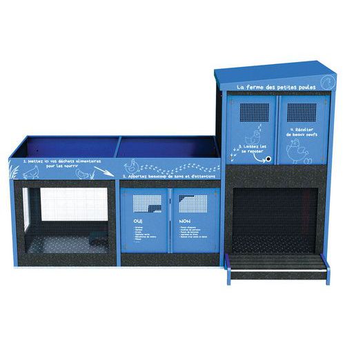 Poulailler et potager en Ipra, matière produite à partir de plastiques multi composants.