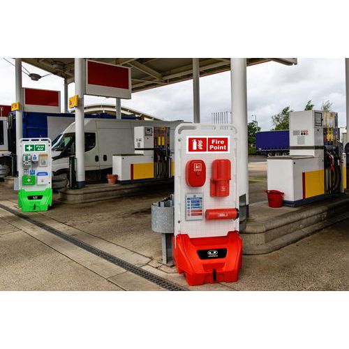Important, compatible avec une majorité de chariots élévateurs. Fixation au sol possible par 3 points d'ancrage.