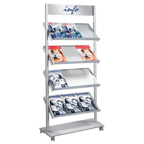 | Intitulé du produit | Présentoir mobile pour brochures Rico, Nb de tablettes: 4, Coloris: Gris, Type: 12 x A4 |