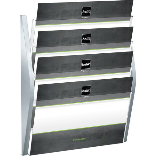 Présentoir mural pour document The Arc, Nb de compartiments: 4, Coloris: Argent, Largeur hors tout: 480 mm
