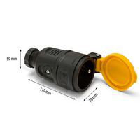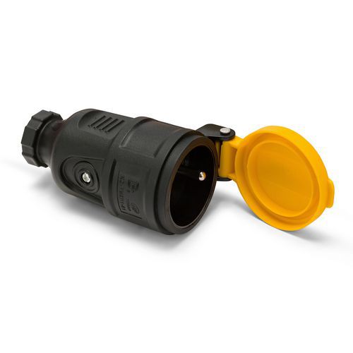Prise câblée en caoutchouc et plastique résistant.