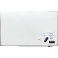 Surface pour écrire avec marqueur. Surface magnétique. Cadre en aluminium avec coins en plastique gris clair. Longueur de l'auget = hauteur du tableau. Fourni avec matériel de montage, auget et marqueur.