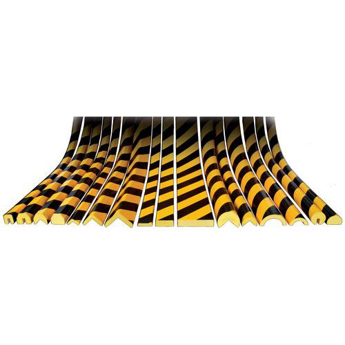 Préviennent les blessures consécutives aux chocs, tout en protégeant les biens d'équipement. Signalent les zones dangereuse à l'intérieur comme à l'extérieur, grâce à leur marquage de sécurité Jaune et Noir. Très grand souplesse, mousse de polyuréthane absolument exempt de HCFC. Résistance à la température (-40 à +100 C°). Se fixent par adhésif haute performance sur de nombreuses surface nettoyées et exemptes de graisse.