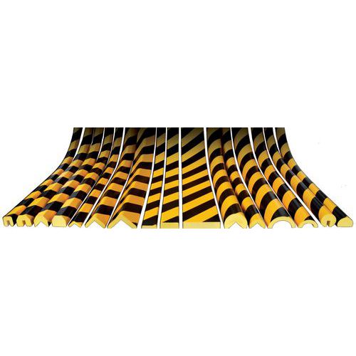 Préviennent les blessures consécutives aux chocs, tout en protégeant les biens d'équipement. Signalent les zones dangereuse à l'intérieur comme à l'extérieur, grâce à leur marquage de sécurité Jaune et Noir. Très grand souplesse, mousse de polyuréthane absolument exempt de HCFC. Résistance à la température (-40 à +100 C°). Se fixent par adhésif haute performance sur de nombreuses surface nettoyées et exemptes de graisse.
