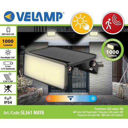 Projecteur LED solaire Maya - 1000 lm avec détecteur - Velamp