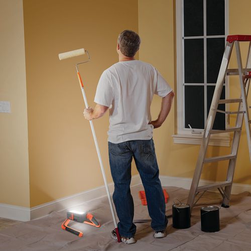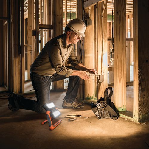 | Intitulé du produit | Projecteur rechargeable, Flux lumineux: 1100 lm, Protection IP: IP X4, Coloris: Orange/gris, Portée: 40 m |