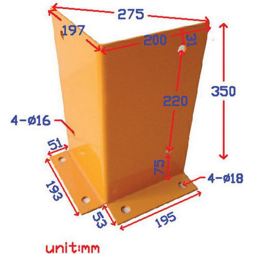 Protection pour pieds d'échelles contre les chocs et collisions. Finition peinture époxy jaune pour une meilleure visibilité. Bonne tenue aux chocs grâce à sa fixation au sol par platine.