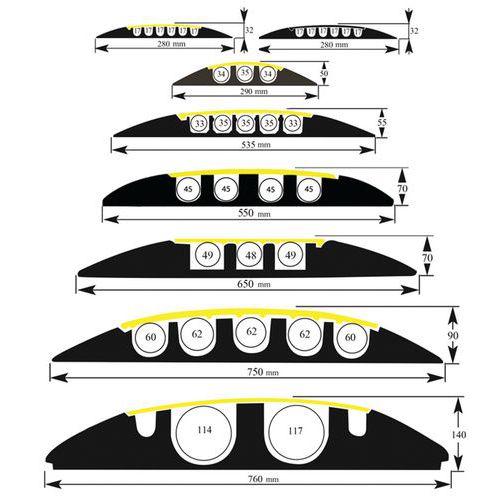 - Protège-câbles BOA avec base (noire) et capot (jaune) en polyuréthane.
