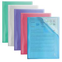 Protège document translucide pour format A4. Assorti de 5 couleurs (vert, gris, violet, rouge et bleu). Organiser vos documents avec une visibilité sur la première te la 4ème de couverture. Epaisseur de 5/10ème.