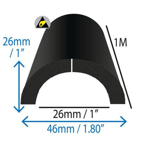 Protège tuyau en demi-cercle - Noir. Prêt à utiliser grâce à sa fixation par adhésif. Pour prévenir les blessures personnelles ou les dommages au matériel dans un environnement de travail dynamique.