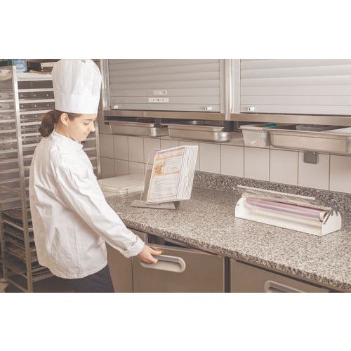 - Kit pupitre antimicrobien à pivot pour mise à disposition hygiénique de documents.