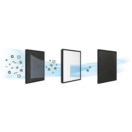- Triple filtration : préfiltre, HEPA et charbon actif.