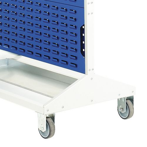 Largeur 1000 mm, profondeur 550 mm Hauteurs version fixe : 1125, 1450 et 1775 mm Version mobile équipée de roues de diamètre 100 mm Simple ou double faces Disponibles en kit avec bacs ou nus à équiper selon vos besoins Finition peinture époxy Ossature coloris gris RAL 7035 et panneaux Bleu 5010 Bac inférieur en option pour tous les modèles à double face Fabriqué au RU Finition : Époxy Garantie client : 3 ans
