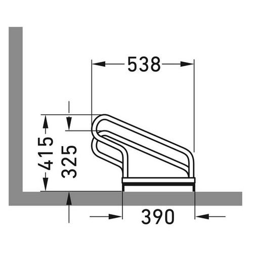 - Stationnement peu encombrant des vélos grâce à l'alternance de positions basses et hautes des arceaux, distance entre les arceaux 390 mm.