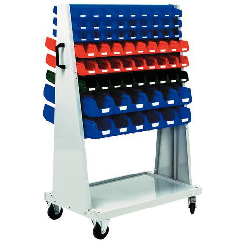 | Intitulé du produit | Rack mobile équipé de bacs à bec Kangourou, Hauteur hors tout: 1600 mm, Largeur hors tout: 1020 mm |