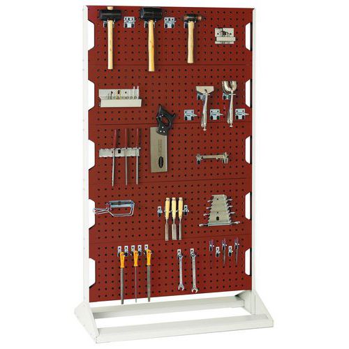 Racks disponibles en version fixe ou mobile, a équiper d’accessoires Perfo. Ces racks sont conçus pour une grande capacité de stockage. Permet d’avoir l’outillage toujours à porter de mains pour une meilleure productivité. Largeur 1000 mm, profondeur 550 mm Hauteurs version fixe : 1125mm, 1450 mm et 1775 mm Hauteur version mobile: 1250 mm avec roues de diamètre 100 mm Simple ou double faces Disponibles en kit avec accessoires ou nus à équiper selon vos besoins Finition peinture époxy Ossature coloris gris RAL 7035 et panneaux Bleu 5010 Bac inférieur en option pour tous les modèles à double face