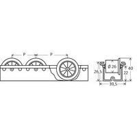- Rail à rouleaux plastique pour charge lourde, longueur 2400 mm.