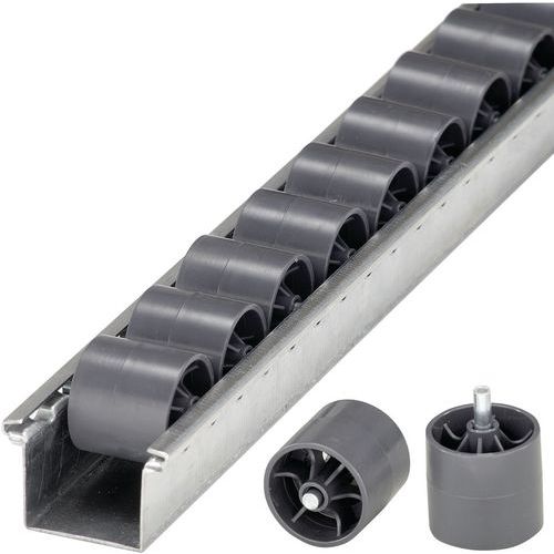 - Rails à galets cylindriques en plastique et axe acier parfait pour les Rayonnage dynamiques colis.