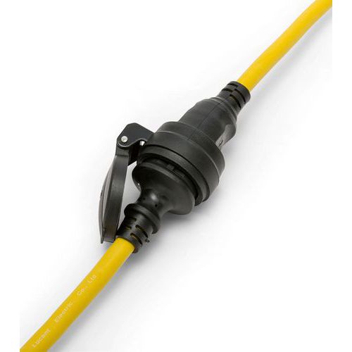 Rallonge de chantier de 10 ou 20 mètres (en focntion des versions) pour extérieur, chantiers, jardins, environnements humides, intérieurs ou industriels.
