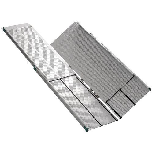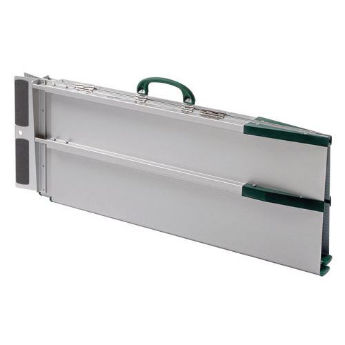 Notre Rampe Portefeuille Télescopique est une rampe extensible qui permet de compenser les différences de niveaux importantes. Elle se coulisse dans la longueur et se replie dans la largeur pour un gain d'espace, un déplacement et un transport facilité.