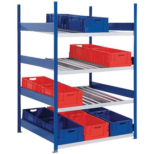 | Intitulé du produit | Rayonnage à rouleaux Kanban, Charge maxi par niveau: 180 kg, Hauteur: 2000 mm, Nb de niveaux: 4 |
