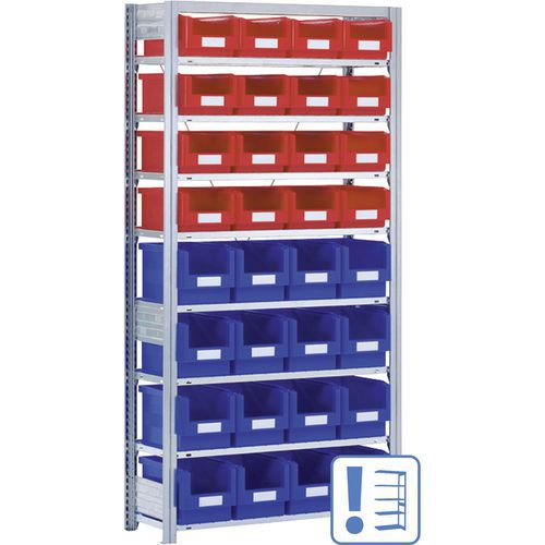 Rayonnage à tablettes équipés de Bac SK, Hauteur hors tout: 1850 mm, Largeur hors tout: 908 mm