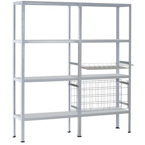 Rayonnage acier galvanisé Multiline, Charge maxi par tablette: 60 kg, Hauteur: 1800 mm, Nb de tablettes: 4