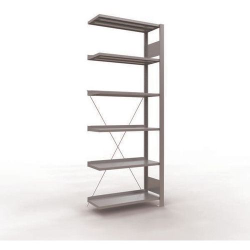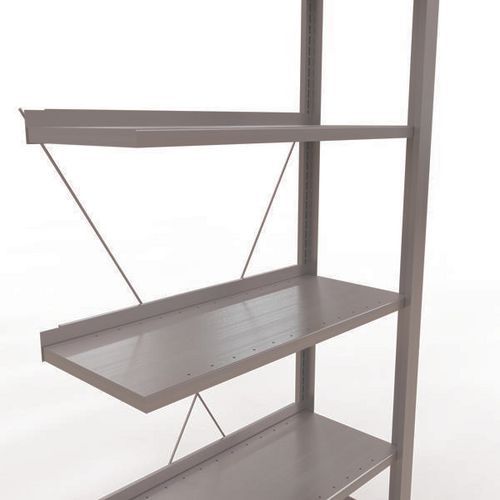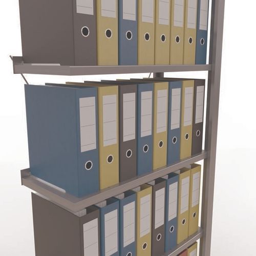 Rayonnage bureau de belle finition pour charge légère. Tablette pleine tôlée pour toutes natures d'objets. Montant plein tôlé sans perforation face avant. Barre de butée pour éviter la chute des objets. Pied de protection pour préserver les sols. Montage sans outils, par système de clip.