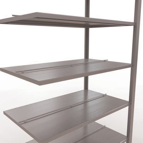 Rayonnage bureau de belle finition pour charge légère. Tablette pleine tôlée pour toutes natures d'objets. Butée centrale pour délimitation de chaque face. Montant plein tôlé sans perforation face avant. Pied de protection pour préserver les sols. Montage sans outils, par système de clip.