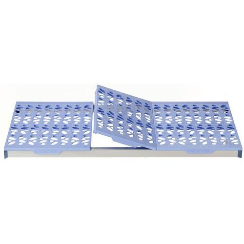 Etagère composée de 2 longerons en aluminium anodisé et d'une combinaison de clayettes.