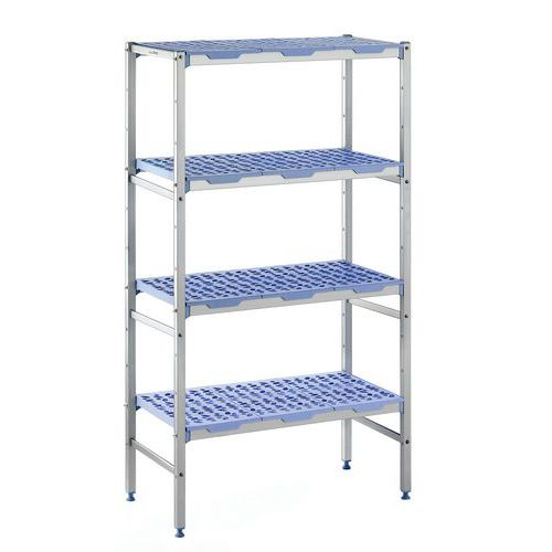 Rayonnage alimentaire facile à installer, par emboîtement, sans outils, d'entretien aisé avec clayette lavable en machine.