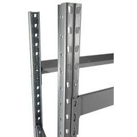 Rayonnage d'entrepôt robuste en acier galvanisé avec tablette agglomérée. Plateau bois, idéal pour les charges non conditionnées, en vrac et les petits colis. Montage aisé sans outils, extension simple à réaliser avec l'ajout d'éléments suivants. Finition résistante aux chocs et rayures avec échelles acier galva et lisses peinture époxy.