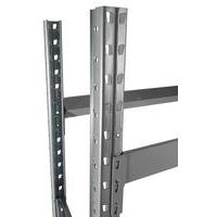 Rayonnage d'entrepôt robuste en acier galvanisé avec tablette agglomérée. Plateau bois, idéal pour les charges non conditionnées, en vrac et les petits colis. Montage aisé sans outils, extension simple à réaliser avec l'ajout d'éléments suivants. Finition résistante aux chocs et rayures avec échelles acier galva et lisses peinture époxy.