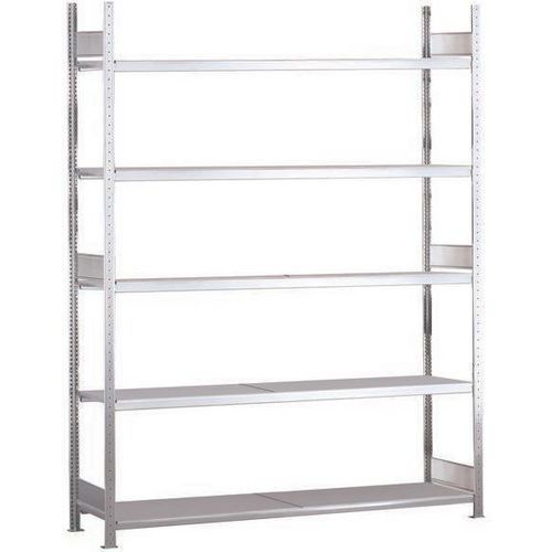 Solide rayonnage d'entrepôt à niveau plein acier tôlé. Stable sans croisillon, accessible d'un côté et de l'autre. Parfait en combinaison avec d’autres rayonnages Easy-Fix. Haute résistance à la corrosion avec finition acier galvanisé.