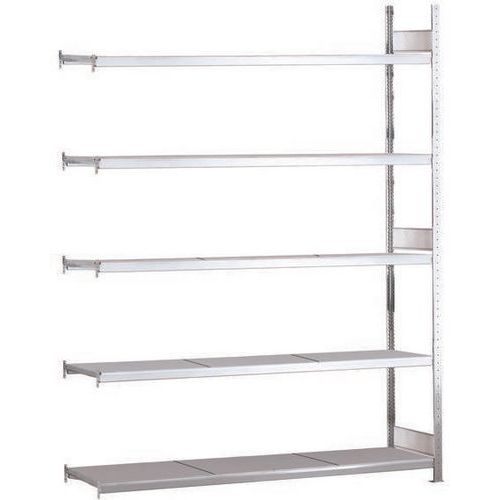 Solide rayonnage d'entrepôt à niveau plein acier tôlé. Stable sans croisillon, accessible d'un côté et de l'autre. Parfait en combinaison avec d’autres rayonnages Easy-Fix. Haute résistance à la corrosion avec finition acier galvanisé.