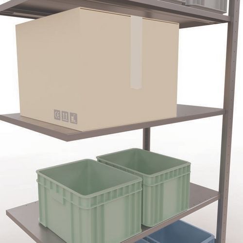 Rayonnage d'entrepôt robuste, accès double face, finition galva ultra-résistante aux environnements humides. Tablettes pleines acier tôlé pouvant supporter des marchandises de multiples dimensions, accessibles des deux côtés pour faciliter le picking et la préparation de commandes. Étagère industrielle facile et rapide à monter par emboîtement, sans outillage particulier. Extension de rayonnage aisée avec l'adjonction de 1 ou plusieurs éléments suivants. Distance entre les perforations : 25 mm. Hauteur de la première perforation : 50 mm.