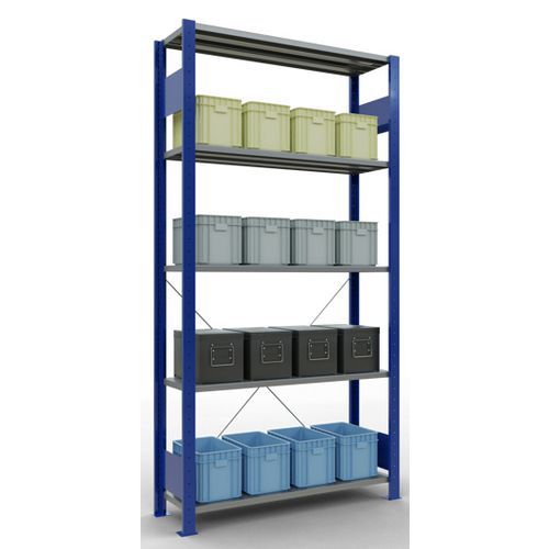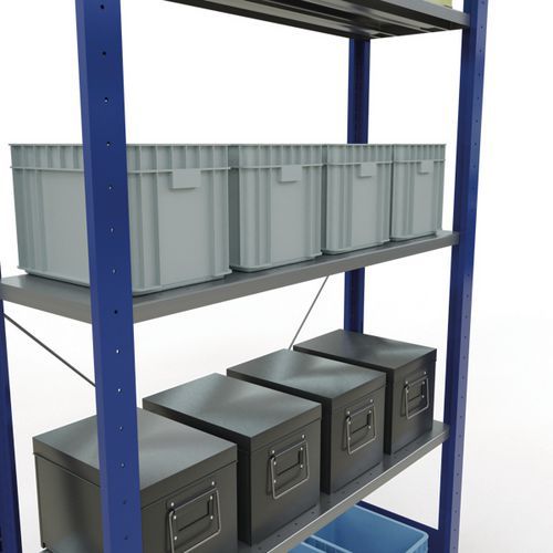 Système de rayonnage robuste et très complet avec belle finition peinte époxy, gris ou bleu. Tablettes pleines acier tôlé pouvant supporter des marchandises de multiples dimensions. Étagère industrielle facile et rapide à monter par emboîtement, sans outillage particulier. Extension de rayonnage aisée avec l'adjonction de 1 ou plusieurs éléments suivants.