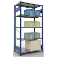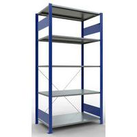 Système de rayonnage robuste et très complet avec belle finition peinte époxy, gris ou bleu.  Tablettes pleines acier tôlé pouvant supporter des marchandises de multiples dimensions.  Étagère industrielle facile et rapide à monter par emboîtement, sans outillage particulier.  Extension de rayonnage aisée avec l'adjonction de 1 ou plusieurs éléments suivants.