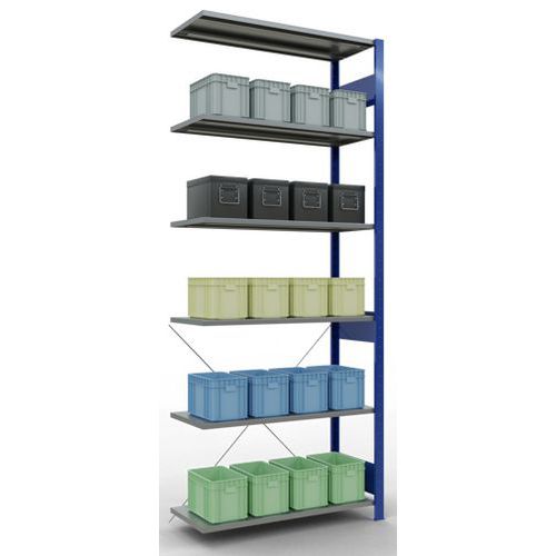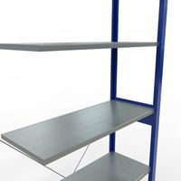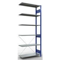 Système de rayonnage robuste et très complet avec belle finition peinte époxy, gris ou bleu. Tablettes pleines acier tôlé pouvant supporter des marchandises de multiples dimensions. Étagère industrielle facile et rapide à monter par emboîtement, sans outillage particulier. Extension de rayonnage aisée avec l'adjonction de 1 ou plusieurs éléments suivants.