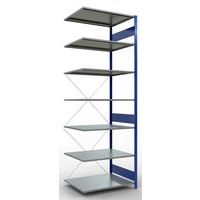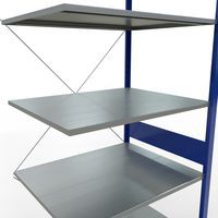 Système de rayonnage robuste et très complet avec belle finition peinte époxy, gris ou bleu.  Tablettes pleines acier tôlé pouvant supporter des marchandises de multiples dimensions.  Étagère industrielle facile et rapide à monter par emboîtement, sans outillage particulier.  Extension de rayonnage aisée avec l'adjonction de 1 ou plusieurs éléments suivants.