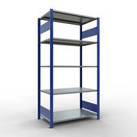 Système de rayonnage robuste et très complet avec belle finition peinte époxy, gris ou bleu.  Tablettes pleines acier tôlé pouvant supporter des marchandises de multiples dimensions.  Étagère industrielle facile et rapide à monter par emboîtement, sans outillage particulier.  Extension de rayonnage aisée avec l'adjonction de 1 ou plusieurs éléments suivants.