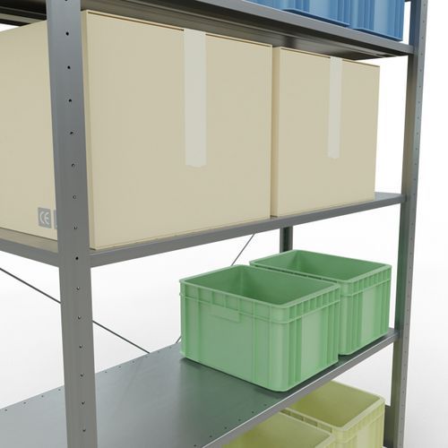 Rayonnage d'entrepôt robuste, finition galva ultra-résistante aux environnements humides. Tablettes pleines acier tôlé pouvant supporter des marchandises de multiples dimensions. Étagère industrielle facile et rapide à monter par emboîtement, sans outillage particulier. Extension de rayonnage aisée avec l'adjonction de 1 ou plusieurs éléments suivants. Distance entre les perforations : 25 mm. Hauteur de la première perforation : 50 mm. Hauteur de la première perforation : 22,5 mm.