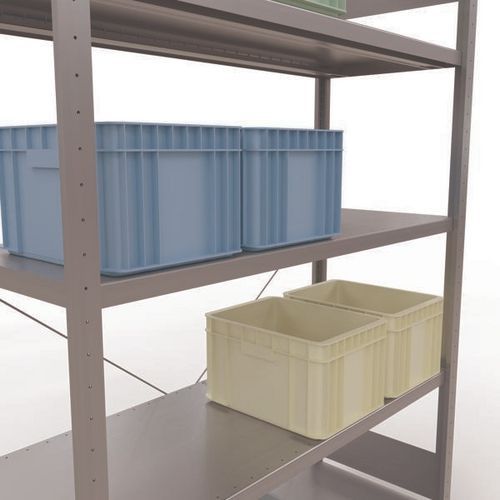 Rayonnage d'entrepôt robuste, finition galva ultra-résistante aux environnements humides. Tablettes pleines acier tôlé pouvant supporter des marchandises de multiples dimensions. Étagère industrielle facile et rapide à monter par emboîtement, sans outillage particulier. Extension de rayonnage aisée avec l'adjonction de 1 ou plusieurs éléments suivants. Distance entre les perforations : 25 mm. Hauteur de la première perforation : 50 mm. Hauteur de la première perforation : 22,5 mm.
