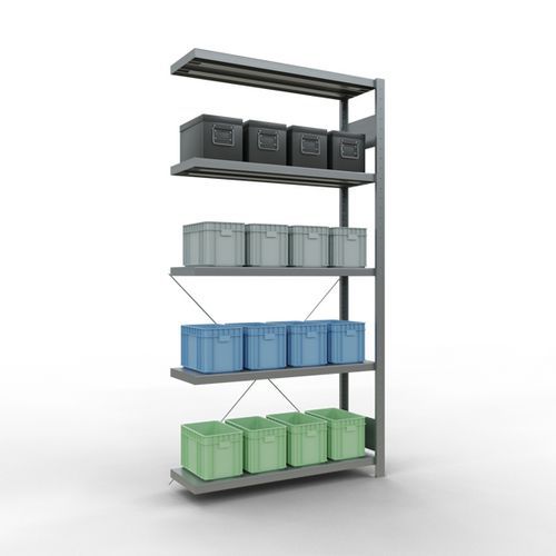 Rayonnage léger Easy-Fix, Charge maxi par tablette: 250 kg, Hauteur: 2000 mm, Nb de tablettes: 5