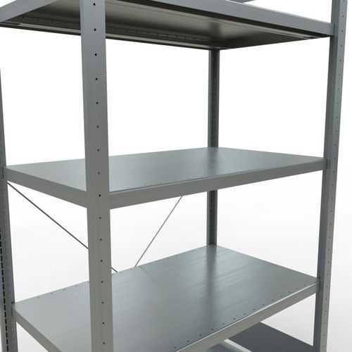 Rayonnage d'entrepôt robuste, finition galva ultra-résistante aux environnements humides. Tablettes pleines acier tôlé pouvant supporter des marchandises de multiples dimensions. Étagère industrielle facile et rapide à monter par emboîtement, sans outillage particulier. Extension de rayonnage aisée avec l'adjonction de 1 ou plusieurs éléments suivants. Distance entre les perforations : 25 mm. Hauteur de la première perforation : 50 mm. Hauteur de la première perforation : 22,5 mm.