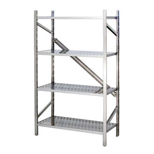 Rayonnage médical robuste à tablette ajourée inox 18/10. Qualité et hygiène irréprochable avec matériau inox AISI 304. Rayonnage d'extension aisée par l'ajout d'éléments suivants.