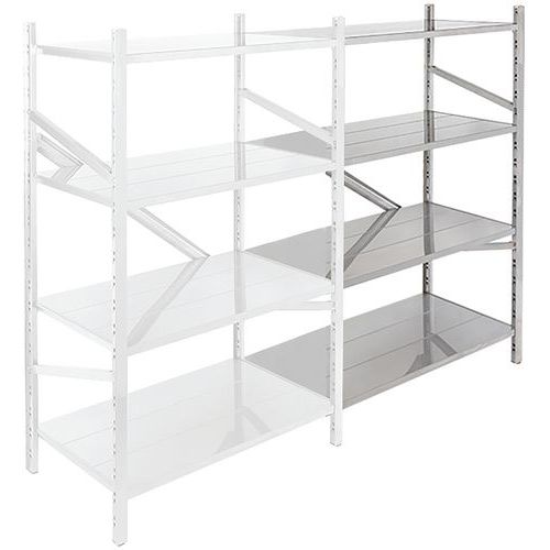 Rayonnage médical robuste à tablette pleine inox 18/10. Qualité et hygiène irréprochable avec matériau inox AISI 304. Rayonnage d'extension aisée par l'ajout d'éléments suivants.