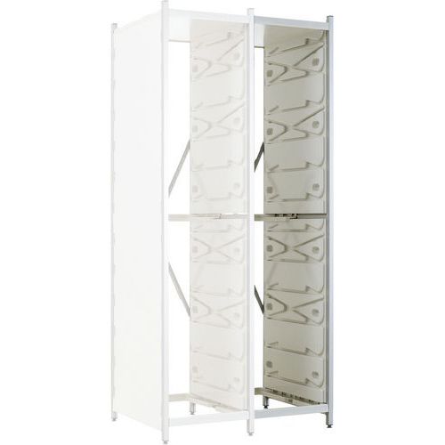 Important : rayonnage livré sans bacs et sans accessoires (tablette, clayette, bac, séparateur-bac, rail, etc.), pensez à les commander. Pour information, 12 niveaux de glissières horizontales sont aménageables pour les recevoir. À noter que l'élément « suivant » ne peut être installé seul, élément d'extension, il vient s'accrocher aux montants du rayonnage qui le précède. Rayonnage livré à plat. Le rayonnage médical Iso-Stock peut être installé sur rail. Attention, seuls les accessoires et autres rayonnages de gamme Iso-Stock sont compatibles.